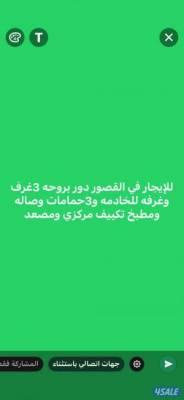 نشر منذ 2 شهر و 28 يوم للإيجار في القصور دور بروحه 3غرف نوم وغرفه للخادمه و3حمامات وصاله واسعه ومطبخ تكييف مركزي ومصعد ومواقف مظلله