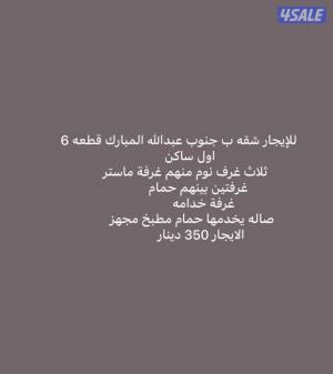 السعر: 350 نشر منذ 2 ساعة و 19 دقيقة للإيجار شقه جنوب عبدالله المبارك قطعه 6