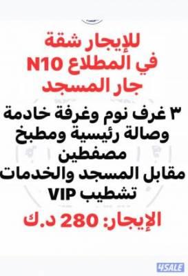 السعر: 280 نشر منذ 2 ساعة و 3 دقيقة للإيجار في المطلاع السكنية، N10، شقة جديدة أول ساكن، مقابل المسجد مباشرة، وجميع خد/مات القطاع، تشطيب VIP، إطلالة غروب جميلة جداً على الشقة، مكونة من: