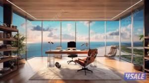 للإيجار مكتب بإطلالة مباشرة على البحر. إطلالة بحرية بانورامية مواقف سيارات متوفرة تشطيب فاخر ومكيف بالكامل .