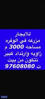 للايجار مزرعه في الوفره مساحه 3000 م زاويه مقابل بر وارتداد فيها بيت