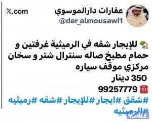 السعر: 350 نشر منذ 3 يوم و 12 ساعة الرميثيه شقه للايجار