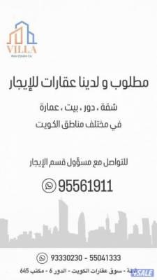 تتكون من 3 غرف وحده منهم ماستر وغرفتين يخدمهم حمام و صالة و مطبخ و غرفة صغيره القيمة الايجارية 420د.ك