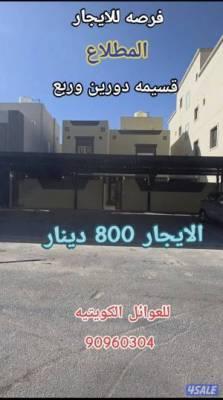 السعر: 800 نشر منذ 1 يوم و 13 ساعة فرصه للايجار قسيمه كامله دورين وربع فى المطلاع قطاع ن10 تشطيب ممتاز نرحب بجميع العوائل الكويتيه شرط موظف حكومي الايجار سعر ممتاز جدا 800 دينار