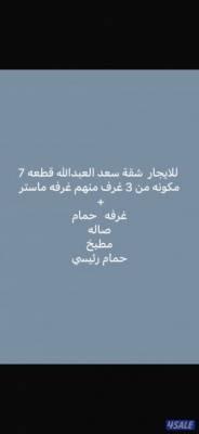 السعر: 350 نشر منذ 12 ساعة و 34 دقيقة للايجار شقة سعد العبدالله قطعه 7 مكونه من 3 غرف منهم غرفه ماستر