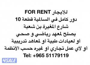 السعر: 1900 نشر منذ 6 ساعة و 53 دقيقة للإيجار دور كامل في شارع المغيرة بن شعبة يصلح ليكون معهد رياضي و صحي أو صالون أو عيادة أو معاهد إدارية و تدريبية.