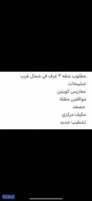 إيجارات الكويت - مطلوب شقة للايجار 3 غرف شمال غرب الصليبخات