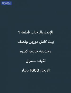 السعر: 1600 نشر منذ 4 ساعة و 2 دقيقة للإيجار بيت كامل بالرحاب قطعه 1