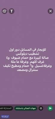 السعر: 850 نشر منذ 3 ساعة و 5 دقيقة للإيجار في المسايل دور اول سوبر ديلوكس 4غرف نوم وغرفه للخادمه وغرفه غسيل و6حمامات وصاله ومطبخ
