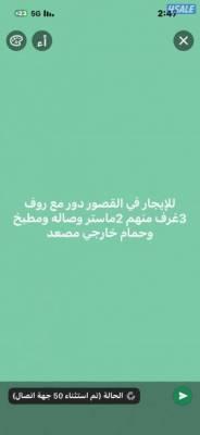 القصور دور مع روف 3غرف و3حمام وصاله ومطبخ