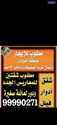 ومطلوب جميع الايجارات شقق وادوار وفلل مطلوب دور عائله أجانب ( القيروان ) شمال جابر الاحمد تخصص القيروان بيع وايجارات الرجاء ارسال التفاصيل بالوتساب |