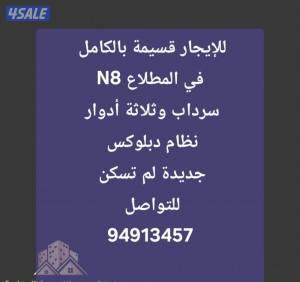للإيجار قسيمة في المطلاع سرداب وثلاثة أدوار وربع N8 ارتداد كبير