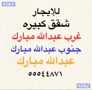 للإيجار شقه في عبدالله مبارك مكونه من ٣ غرف كبار منهم وحده ماستر وصاله ومطبخ و٢ حمام . للمعاريس او طفلين الايجار ٣٥٠ د.ك يوجد شقق بكل قطع عبدالله مبارك ⭐️ غرب عبدالله مبارك ⭐️ للايجار شقه كبيره في غرب عبدالله مبارك مكون من ٣ غرف منهم وحده ماستر وصاله كبيره وغرفه خاادمه بحمامها ومطبخ كبير مجهز و٣ حمامات. للمعاريس او ٢ اطفال الايجار ٣٥٠ د.ك للايجار شقه كبيره في غرب عبدالله مبارك مكون من ٣ غرف منهم وحده ماستر وصاله كبيره وغرفه خاادمه بحمامها ومطبخ كبير مجهز و٣ حمامات. للمعاريس او٣ اطفال الايجار ٣٥٠ د.ك ويوجد للايجار شقق جنوب عبدالله مبارك للايجار شقه كبيره في جنوب عبدالله مبارك مكون من ٣ غرف منهم وحده ماستر وصاله كبيره وغرفه خاادمه بحمامها ومطبخ كبير مجهز و٣ حمامات. للمعاريس او ٢ |