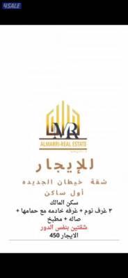 للإيجار اول ساكن تشطيب سوبر ديلوكس ٣ غ منهم ١غ ماستر غ خاادمه بحمامها