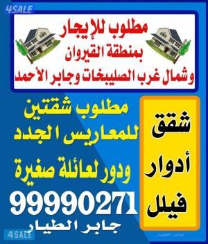 المطلاع مطلوب شقتين بالقيروان للمعاريس اخوان ومطلوب جميع الايجارات شقق وادوار وفلل تخصص القيروان وبيع وايجارات ومطلوب شراء فيلا بالقيروان لزبون جاد بالشراء الرجاء للجادين في حال امر البيع يمنع الوسطاء |