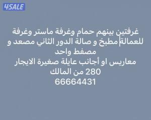 إيجارات الكويت - غرفتين بينهم حمام و غرفة ماستر و غرفة للعمالة المنزلية مطبخ و صالة