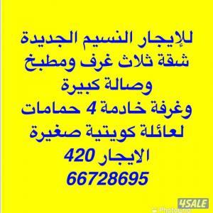السعر: 1 نشر منذ 3 ساعة و 14 دقيقة 1- للايجار النسيم الجديدة شقة ثلاث غرف وصالة ومطبخ وغرفة خدا مه واربعة حمامات مسفطين سيارة 420 دك