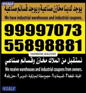 نسقبل قسايم صناعية @للإيجار محل المساحه 250متر مع سندرة 125متريصلح لعدة أنشطه مع مكتبين بالميزانيين المساحه 200متر إجمالي المساحه 575 متر بقيمه ايجاريه 3100 @سرداب المساحه 1000متر أرتفاع 5أمتار مكيف يوجد مكتب بقيمه ايجاريه 4650دك لدينا كل مايخص الصناعي سوبر ستار العقارية @للإيجار سرداب بالعارضيه الصناعية 1000متر مكيف نزله سيارة @للإيجار أرضي 1000متر بالعارضيه مطبخ مركزي جاهز @للإيجار قسيمه سرداب أرضي ميزانين بالعارضيه غذائي @للإيجار قسيمه بالنسيم 1000متر تصلح جميع الأنشطة @للإيجار مخزن 5000متر بالشعيبه المتر ب3دك مواد انشائيه موفقين ان شاءالله |