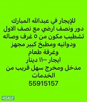 للإيجار دور ارضي ونصف مفتوحين علي بعض عبدالله المبارك
