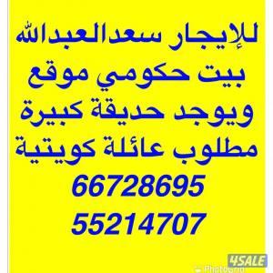 للايجار بيت حكومي سعدالعبدالله/ وبيت بالواحة بيت كامل دورين