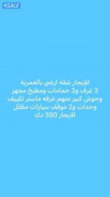 السعر: 350 نشر منذ 2 ساعة و 59 دقيقة للايجار شقه ارضي بالعمرية 3 غرف و3 حمامات ومطبخ مجهز تكييف وحدات مع حوش كبير جداا الايجار 350 دك نهائي 2 موقف سيارات مظلل