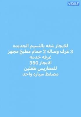 للايجار شقه بالنسيم ق3 3غرف وصاله2حمام مطبخ غ خدمه الايجار 350 طفلين