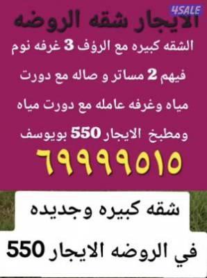 الروضه الايجار شقه كبيره مع روف الايجار 550