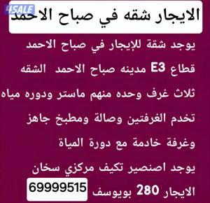 السعر: 280 نشر منذ 9 ساعة و 31 دقيقة الايجار شقه كبيره في مدينه صباح الاحمد 280 بويوسف