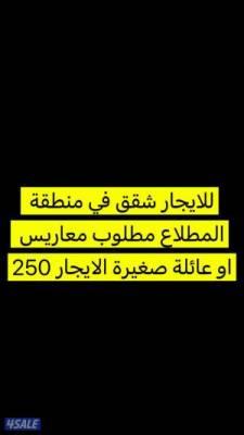 للإيجار شقق منطقة المطلاع مطلوب معاريس او عائلة صغيره
