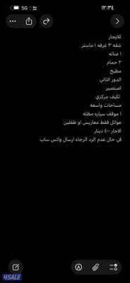 شقه ٣ غرفه ١ ماستر ١ صاله ٢ حمام مطبخ الدور الثاني اصنصير تكيف مركزي مساحات واسعه ١ موقف سياره مظله عوائل فقط معاريس او طفلين الاجار ٤٠٠ دينار في حال عدم الرد الرجاء ارسال واتس ساب  |