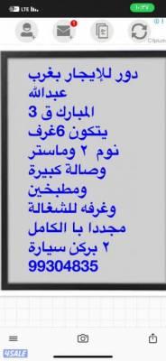 للإيجار دور اول بغرب عبدالله المبارك ق 3 وسعد العبدالله و الفردوس ق 6