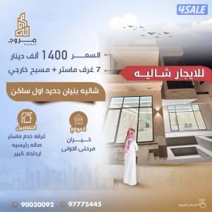 للايجار دوبلكس جابر الاحمد ارضي ميزانين اول جديده اول ساكن