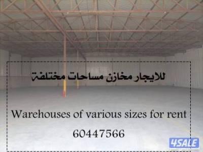 للايجار مخزن ومستودعات مساحة مختلفة تصلح لجميع التخزين