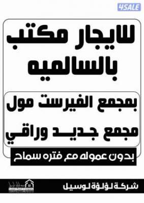السعر: 400 نشر منذ 3 يوم و 9 ساعة للإيجار مكتب ٣٥م تقريبا بالسالميه مجمع راقي تشطيب مميز اول مستأجر مدخل ومخرج سهل منطقه حيويه موقع مميز بدون عموله