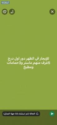 نشر منذ 3 يوم و 2 ساعة للايجار في الظهر دور اول درج 5غرف منهم ماستر و3حمام وصاله ومطبخ تكييف وحدات