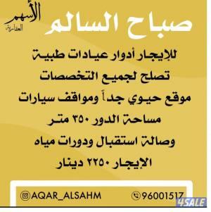 نشر منذ 1 شهر و 28 يوم للإيجار في صباح السالم أدوار عيـادات طبيـة او معاهد صحيه تصلح لكل التخصصات ،