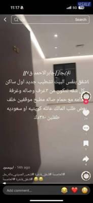 =========== للإيجار//شمال غرب الصلببيخات //ق١ //شقه تتكون من ٣غرف نوم وحده ماستروغرفتين بينهم حمام غرفة خداامه مع حمام صاله مطبخ موقف واحد ٤٢٠دك طلب المالك عائله كويتيه طفل طفلين ============== للإيجار//شمال غرب الصليبيخات //ق١//شقه تتكون من ٣غرف نوم وحده ماستروغرفتين بينهم حمام غرفة خداامه صاله مطبخ طلب المالك معرس كويتي فقط ٣٥٠دك =============. للإيجار//جابرالاحمد ق٧//شقتين تشطيب جديد اول ساكن كل شقه تتكون من ٣غرف نوم وحده منهم ماستروغرفتين بينهم حمام غرفة خداامه مع حمام صاله مطبخ موقفين خلف بعض طلب المالك كويتي او سعودي او وافد ٣٨٠دك نهائي ============== للإيجار//جابرالاحمد ق٧//شقه تتكون من ٣غرف نوم ٢حمام صاله مطبخ موقف واحد ٣٥٠دك طلب المالك عائله صغيره طفل او طفلين ============ للإيجار//جابرالاحمد ق٧//شقه تتكون من ٣غرف نوم وحده ماستروغرفتين بينهم حمام غرفة خداامه مع حمام صاله مطبخ موقفين طلب المالك عائله كويتيه طفلين ٤٠٠دك |