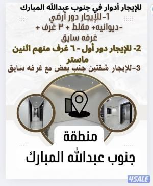 نشر منذ 1 شهر و 6 يوم للإيجار أدوار وشقق في جنوب عبدالله المبارك