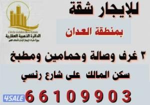للايجار شقة بالعدان شارع رئيسي لمعاريس أو اسرة صغيرة للجادين فقط