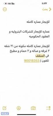 عماره للإيجار للشركات البتروليه و العقود الحكوميه للإيجار عماره كامله مكونه من ٢١ شقه ٢ غرفه و صاله و ٢ حمام و مطبخ تلفون / |