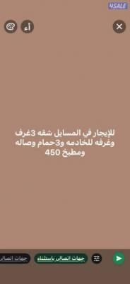 للايجار في المسايل شقه 3غرف وغرفه للخادمه 3حمام