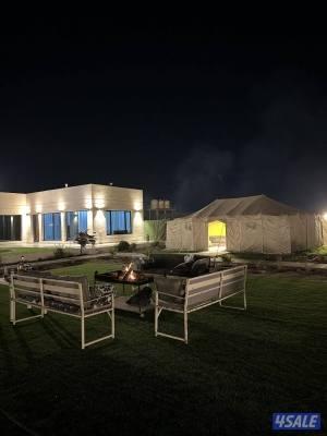 طريق 500 قريبه من ستاربكس تتكون من صاله كبيره وحمامها غرفتين ماستر مطبخ بجميع مستلزماته جلستين خارجيه خيمه بحيره مسبح خارجي