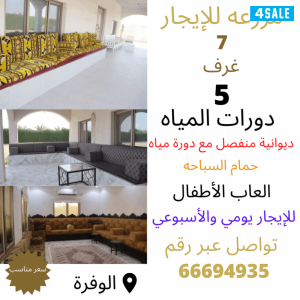 منتزه في مزارع الوفرة بيت ٧ غرف ٥ دورات مياة ديوان منفصل اجار يومي اسب