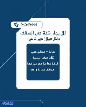 للإيجار شقة في المنقف ق 1 مكونه من 3 غرف ماستر ماستر وصاله وغ خ