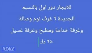 السعر: 650 نشر منذ 5 يوم و 3 ساعة للايجار دور اول بالنسيم الجديدة ٦ غرف وصالة كبيرة ومطبخ وغرفة غسيل وغرفة خداامة بحمام