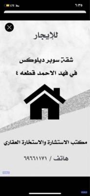 للإيجار شقة سوبر ديلوكس في فهد الاحمد ق ٤