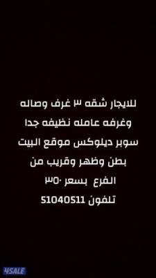 السعر: 350 نشر منذ 7 ساعة و 16 دقيقة للايجار شقه ٣ غرف وصاله وغرفه ع الشقه نظيفه جدا وموقع البيت بطن وظهر قريب من الفرع