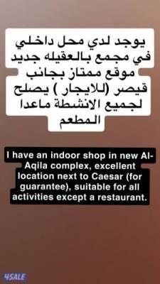 نشر منذ 1 شهر و 3 يوم I have an indoor shop in Al-Aqila complex, excellent location next to Caesar (for rent )suitable for all activities except a restaurant.