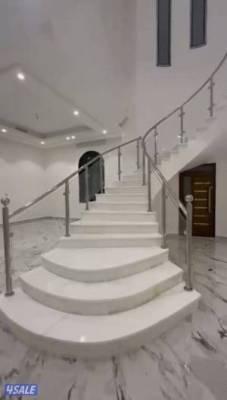يتكون من: الدور الارضي عبارة صالة كبيرة مع حمام ومغاسل للضيوف وغرفة ماستر ومطبخ مجهز وحمام مع مدخل خاص ودوانية مع مغاسل وحمام للضيوف الدور الاول 4 غرف نوم ماستر مع بلكونات واثنين غرف نوم يخدمهم حمام مع غرف للخدم تكيف مركزي مصافط مظللة الايجار: 1500د.ك