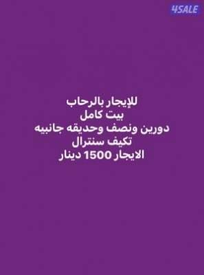 دورين ونصف وحديقه جانبيه مدخل خاص يوجد غرفه حارس خارج البيت بالحديقه البيت تكيف سنترال مدخل ومخرج سهل قريب من فرع الجمعيه والمسجد والخدمات الايجار 1500 دينار نتعذر من الاخوة المكاتب والوسطاء